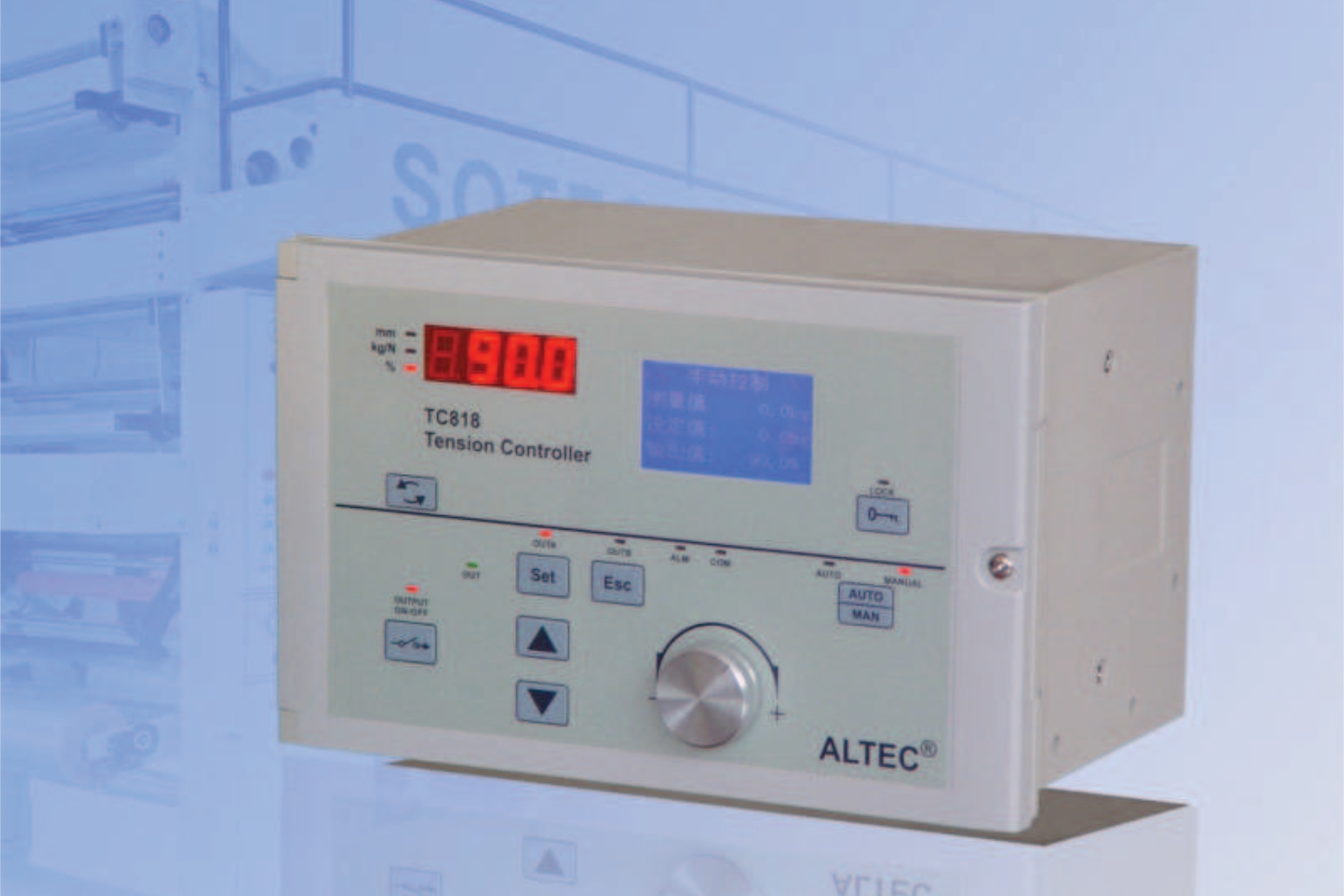 TC818張力控制器采用圖形液晶顯示器,可選擇中、英文顯示,界面友好易用,可輸出0~24V/4A或0~36V/3A直接驅(qū)動(dòng)磁粉離合器,磁粉制動(dòng)器,也可以輸出0~5V,4-20mA,-5V~+5V信號(hào),控制變頻器,伺服電機(jī)或其它執(zhí)行機(jī)構(gòu),對卷料系統(tǒng)進(jìn)行高精度的張力控制??蓮V泛應(yīng)用于造紙、印刷、包裝、紡織印染等行業(yè)。