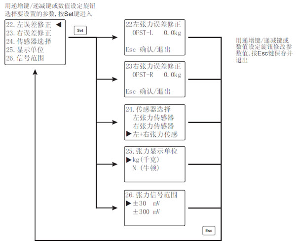 當(dāng)測(cè)量值發(fā)生零點(diǎn)偏移時(shí),如偏移誤差較小,可以對(duì)傳感器誤差進(jìn)行修正,通過修正可以校正零點(diǎn),所設(shè)置的修正值將加到張力顯示值中,如偏移誤差較大,應(yīng)對(duì)控制器進(jìn)行重新標(biāo)定。