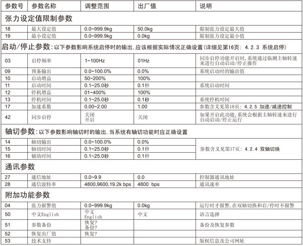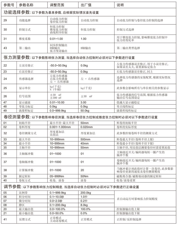 為了使控制器能正確測(cè)量卷料張力,必須對(duì)與張力測(cè)量相關(guān)的參數(shù)進(jìn)行正確的設(shè)置:
